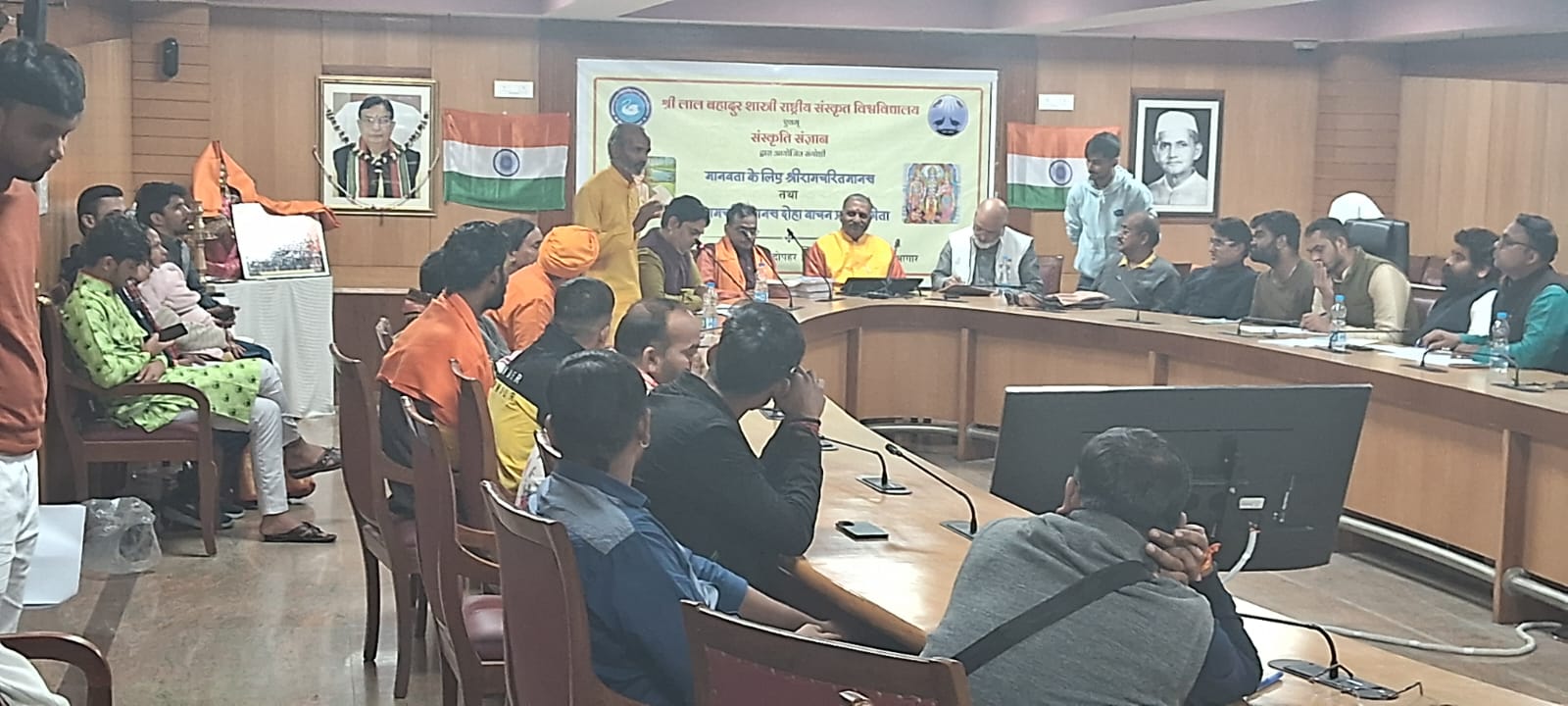 संस्कृति संज्ञान संस्था एवं श्री लाल बहादुर शास्त्री राष्ट्रीय संस्कृत विश्वविद्यालय द्वारा 29 नवंबर 2024, दिन शुक्रवार, को विश्वविद्यालय के सम्मेलन कक्ष में एक दिवसीय संगोष्ठी "मानवता के लिए श्रीरामचरितमानस" का आयोजन करने की योजना है। इसी संदर्भ में एक बैठक का आयोजन श्री लाल बहादुर शास्त्री संस्कृत विश्वविद्यालय के प्रोफेसर रामराज उपाध्याय जी के कार्यालय में किया गया। बैठक में प्रोफेसर वृंदावन दास जी, प्रोफेसर देवेंद्र मिश्रा जी, डॉक्टर रविंद्र कुमार पंडा जी, प्रोफेसर रामानुज उपाध्याय जी, श्री प्रत्यूष कुमार शोध छात्र लाल बहादुर शास्त्री विश्वविद्यालय एवं दिल्ली विश्वविद्यालय के छात्र श्री आदित्य चतुर्वेदी, श्री नीरज जी, श्री हर्ष जी एवं श्री शुभांकर जी ने कार्यक्रम को व्यवस्थित रूप से चलाने के लिए अपने विचार रखें।