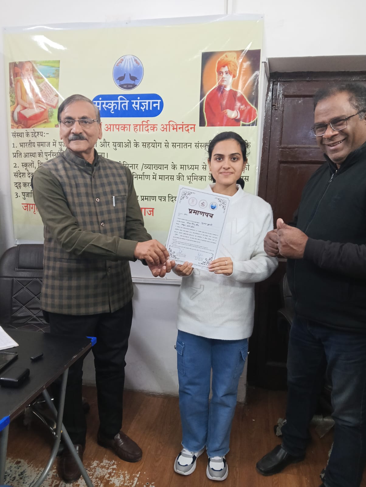 संस्कृति संज्ञान संस्था के अध्यक्ष डॉ प्रदीप कुमार सिंघल एवं महामंत्री श्री संजय राय जी ने श्री पवन सेठी जी को परिवार में नित्य श्रीरामचरितमानस का पाठ करने के लिए संकल्प दिलाया।