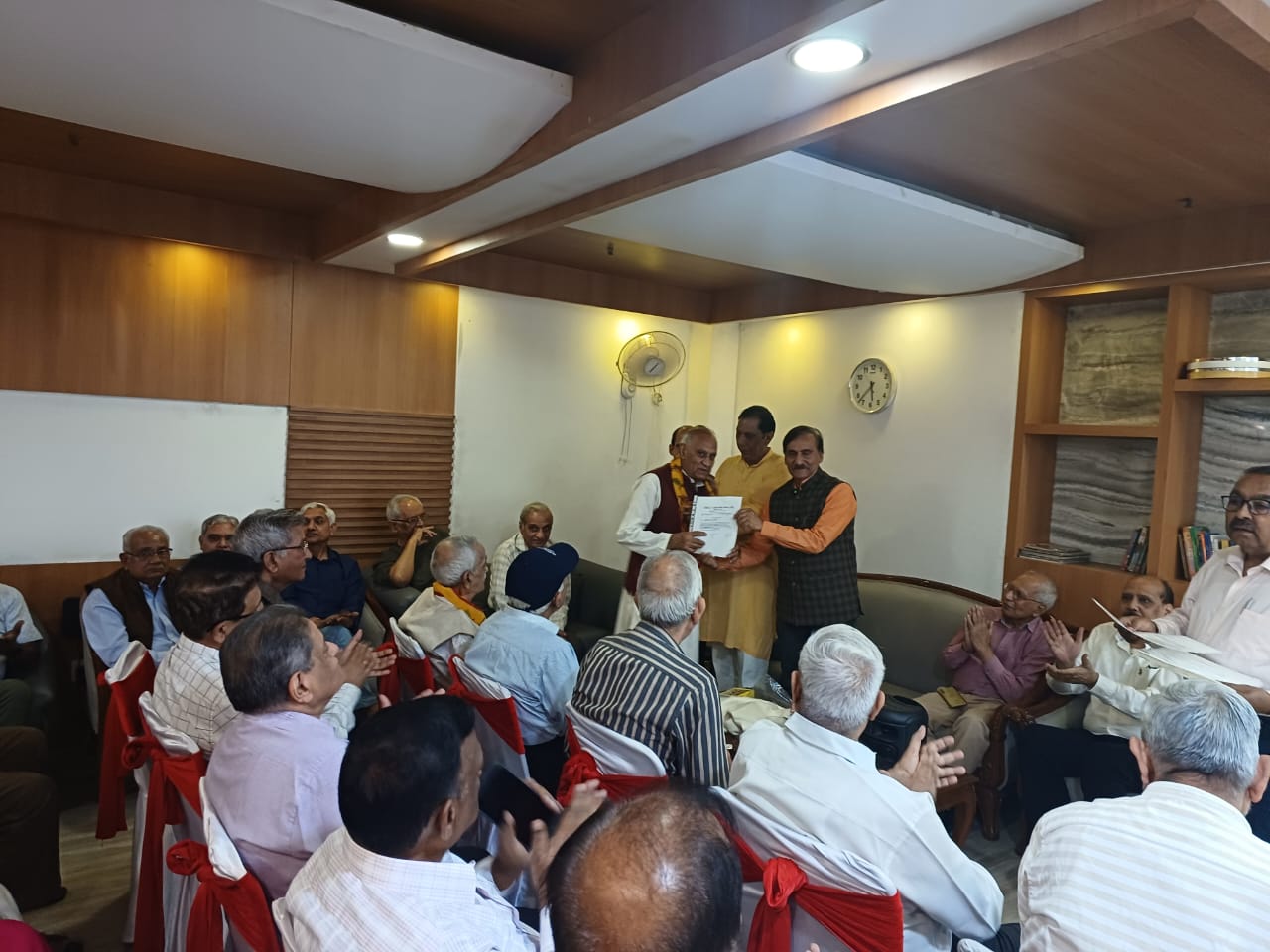 Dr Pradeep Kumar Singhal National President Sanskriti sangyan paid his sincere tribute to Dr Devendra Pradhan father of Shri Dharmendra Pradhan, education minister government of India, at residence of Shri Dharmendra Pradhan Ji 2 kushak road Delhi