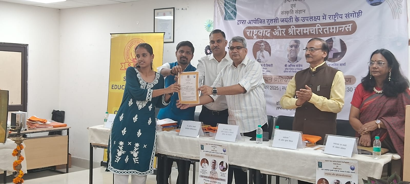 श्री रामचरितमानस दोहा वाचन प्रतियोगिता संस्कृति संज्ञान संस्था एवं दौलत राम कॉलेज दिल्ली विश्वविद्यालय के तत्त्वावधान में तृतीय संगोष्ठी - “ShriRamcharitManas : A panacea for Human Skills and Entrepreneurship"* एवं श्री रामचरितमानस दोहावाचन प्रतियोगिता* का आयोजन, 24 फरवरी 2025 दिन सोमवार को, दौलत राम कॉलेज के सभागार में आयोजित किया गया। प्रथम संगोष्ठी दिल्ली विश्वविद्यालय में 23 अगस्त 2024 को और द्वितीय संगोष्ठी श्री लाल बहादुर राष्ट्रीय संस्कृत विश्वविद्यालय में 29 नवंबर 2024 को आयोजित की गई थी इस कार्यक्रम के मुख्य अतिथि आदरणीय श्री अनिल जी राष्ट्रीय स्वयंसेवक संघ उत्तर क्षेत्र प्रचार प्रमुख, विशिष्ट अतिथि श्री रासबिहारी जी विश्व हिंदू परिषद शहर सचिव एवं अध्यक्ष प्रोफेसर सविता राय प्रिंसिपल दौलत राम कॉलेज थे। संगोष्ठी में उपस्थित माननीय वक्ताओं ने अपने बौद्धिक संबोधन में श्रीरामचरितमानस की व्यवहारिक, सांस्कृतिक, वैज्ञानिक, आर्थिक, सामाजिक इत्यादि उपयोगिताओं से छात्रों एवं युवाओं को अवगत कराया। संस्कृति संज्ञान द्वारा प्रकाशित त्रैमासिक पत्रिका मानस दर्पण का भी लोकार्पण किया गया। श्री रामचरितमानस दोहा वाचन प्रतियोगिता में 100 से ज्यादा छात्रों ने रजिस्ट्रेशन कराया तथा 59 छात्रों ने इसमें भाग लिया। रामचरितमानस के विभिन्न दोहे और चौपाइयां कैसे परिवार और समाज के लिए उपयोगी है इस पर बहुत ही सुंदर विवेचना छात्रों द्वारा की गई। संस्था को पूरा विश्वास है कि इस कार्यक्रम से प्रोत्साहित होकर काफी छात्र एवं युवा श्रीरामचरितमानस का नित्य पाठ करके अपने जीवन का श्रेष्ठ लक्ष्य प्राप्त कर सकेंगे