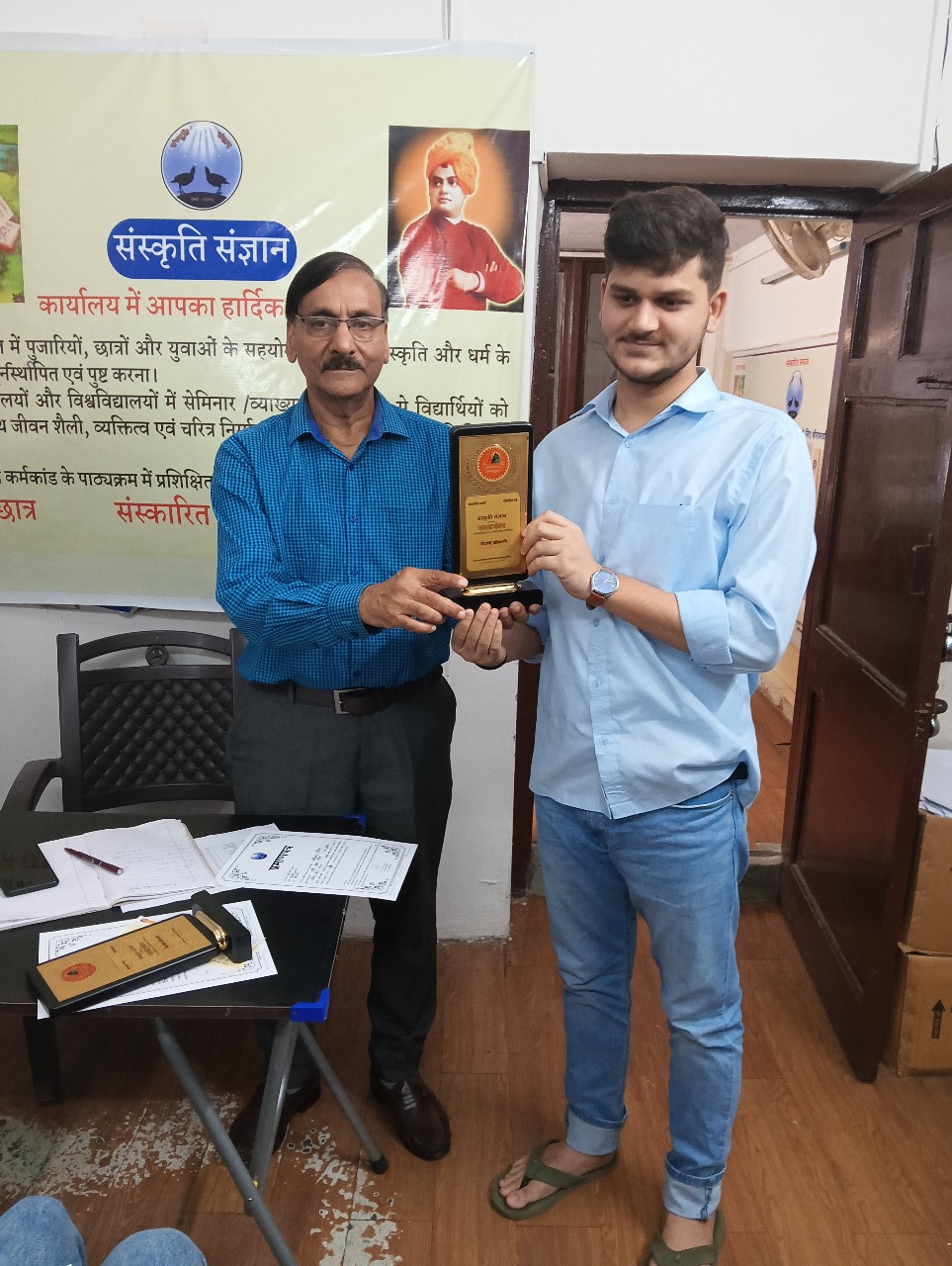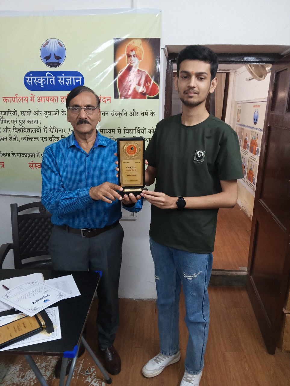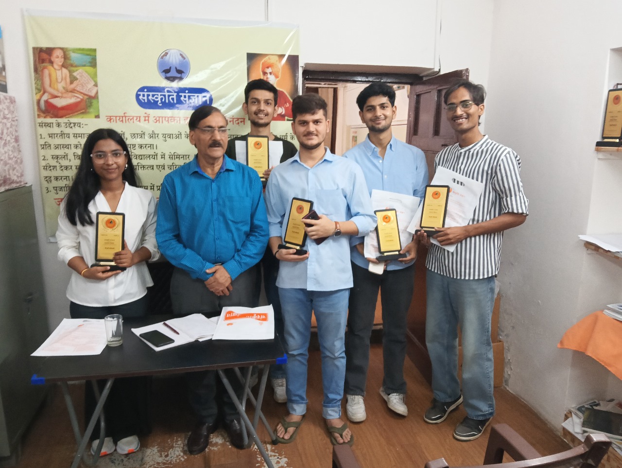 मानस मंथन ऑनलाइन एमसीक्यू प्रतियोगिता अक्टूबर 2025 में विजयी प्रतिभागियों को 15 नवंबर 2025 दिन शनिवार को संस्कृति संज्ञान संस्था के कनॉट प्लेस स्थित कार्यालय में पुरस्कारित एवं सम्मानित किया गया। प्रथम तीन स्थान प्राप्त करने वाले विद्यार्थियों को कैश प्राइज से पुरस्कारित किया गया , भाव्या सचिन मित्तल प्रथम स्थान ₹3100, अंशिका आनंद द्वितीय स्थान ₹2100 रुपए, निधि पांडे तृतीय स्थान ₹1100। मानस मंथन प्रतियोगिता के इंटरव्यू में भाग लेने वाले 33 छात्र-छात्राओं के बीच लकी ड्रा निकाला गया उसके विजेता थे सरस्वती, मान्या एवं अनुष्का शर्मा। जिन छात्रों ने कार्यालय में कार्यक्रम में भाग लिया उनके बीच भी लकी ड्रा निकाला गया उसके विजेता थे सरस्वती, रंजन कुमार एवं सना। सभी को हार्दिक बधाई और शुभकामनाएं।