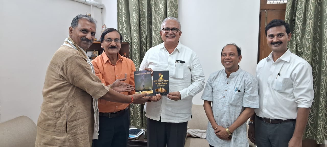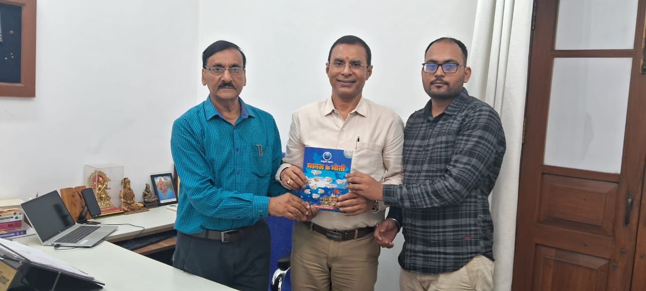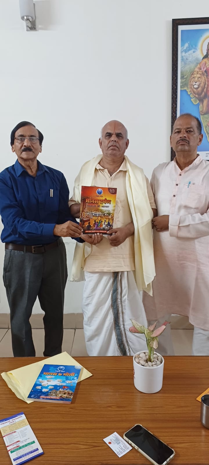 दिनांक 24 मई 2025 को संस्कृति संज्ञान संस्था के राष्ट्रीय अध्यक्ष डॉ प्रदीप कुमार सिंघल, संस्कृति संज्ञान कार्यकारिणी के सदस्य प्रोफेसर रामराज उपाध्याय जी, डायरेक्टर पुरोहित विभाग श्री लाल बहादुर शास्त्री राष्ट्रीय संस्कृत विश्वविद्यालय, प्रोफेसर रजनीश खरे एवं प्रोफेसर राकेश दुबे जी ने आदरणीय श्री के न रघुनंदन, संगठन मंत्री विद्या भारती से वी पी हाउस में मुलाकात की। संस्था द्वारा प्रकाशित पुस्तिका "मानस के मोती*, दिल्ली विश्वविद्यालय के छात्रों द्वारा प्रकाशित त्रैमासिक पत्रिका "मानस दर्पण" एवं राम दरबार उनको भेंट किया। आदरणीय रघुनंदन जी को हमने बताया कि "मानस के मोती"है पुस्तिका पर किए गए शोध कार्य से यह स्पष्ट हुआ है कि श्रीरामचरितमानस में प्रबंधन एवं नेतृत्व क्षमता विषय पर बहुत से प्रसंग है जो छात्र व्यावहारिक रूप में सीख सकते हैं। संस्था से जुड़े बुद्धिजीवियों का मानना है कि इस विषय को भारतीय ज्ञान प्रणाली (IKS) मूल्य वर्धित पाठ्यक्रम (VALUE ADDED COURSE) के अंतर्गत विश्वविद्यालय के छात्रों को पढ़ाया जाना चाहिए आदरणीय *श्री रघुनंदन जी ने इस विषय पर पूरी रुचि दिखाई और आश्वासन दिया कि इस विषय को किस तरह से विश्वविद्यालय में शामिल किया जाए इसकी रूपरेखा तैयार कराई जाएगी। संस्था को पूरा विश्वास है कि श्री रामचरितमानस में निहित जीवन के मूल्यों से भारतवर्ष के छात्र एवं युवा अपने जीवन को सर्वश्रेष्ठ बनाएंगे तभी समाज एवं राष्ट्र के विकास में अपनी महत्वपूर्ण भूमिका निभा पायेंगे