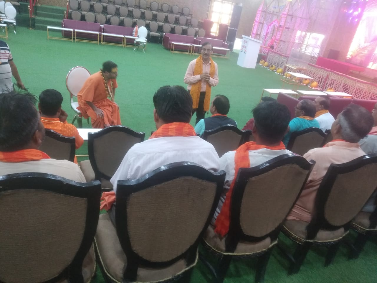 कार्यक्रम में आए आचार्य श्री पुष्पेंद्र जी ने आदरणीय श्री उदय कौशिक जी राष्ट्रीय अध्यक्ष कैलाश मानसरोवर धाम का स्वागत किया।